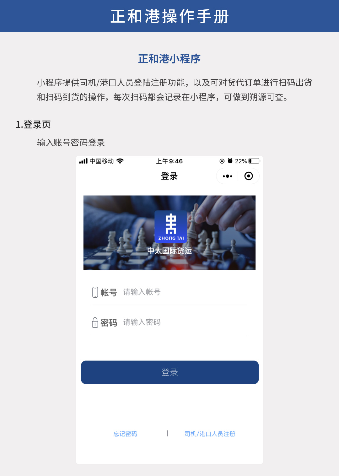 小程序-正和港操作手冊 Copyright Fujian Quanzhou Zhongtai IMP.And EXP.CO.,LTD福建泉州市中太進出口有限公司 » 小程序-正和港操作手冊 ZHONGTAI 普通 分享到: