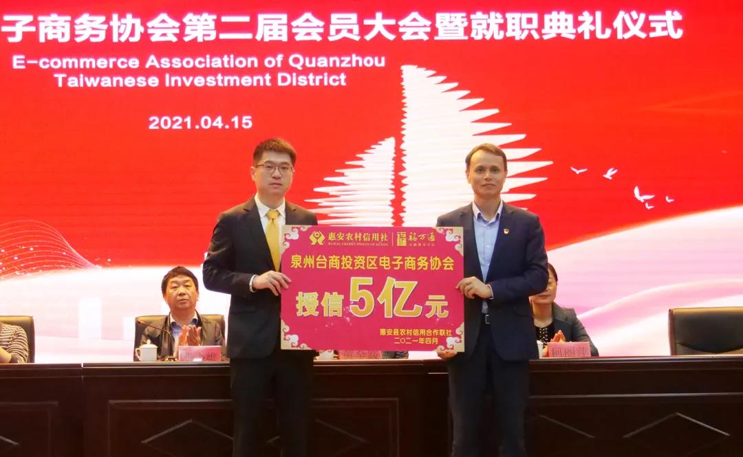 銀行授信授牌儀式 惠安縣農(nóng)村信用合作聯(lián)社請(qǐng)陳景曙主任向區(qū)電商協(xié)會(huì)授信授牌