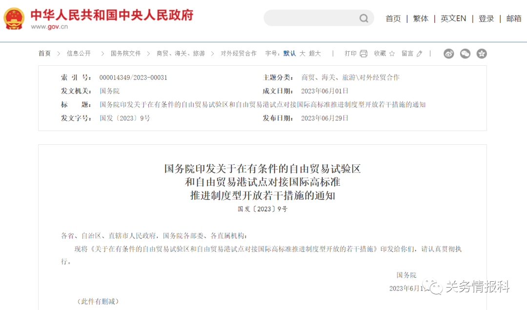 重磅!自貿(mào)區(qū)和自貿(mào)港試點(diǎn)高標(biāo)準(zhǔn)推進(jìn)制度型開放若干措施